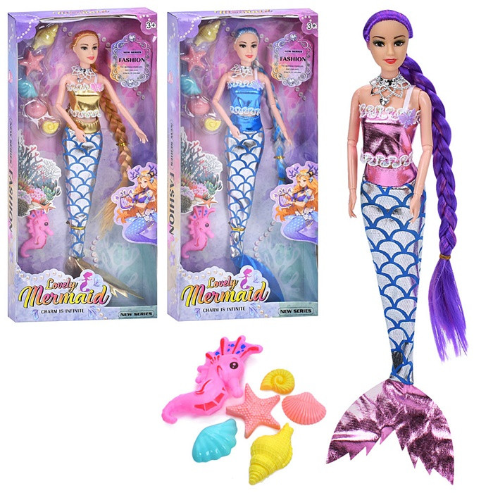 Лялька має довге шовковисте волосся, рухомі шарнірні руки та ноги, а також хвіст у вигляді яскравих лусочок із декоративними мушлями. Три різновиди дозволяють обрати улюблену русалку. Ідеальний подарунок для маленьких мрійниць, які люблять казкові історії.